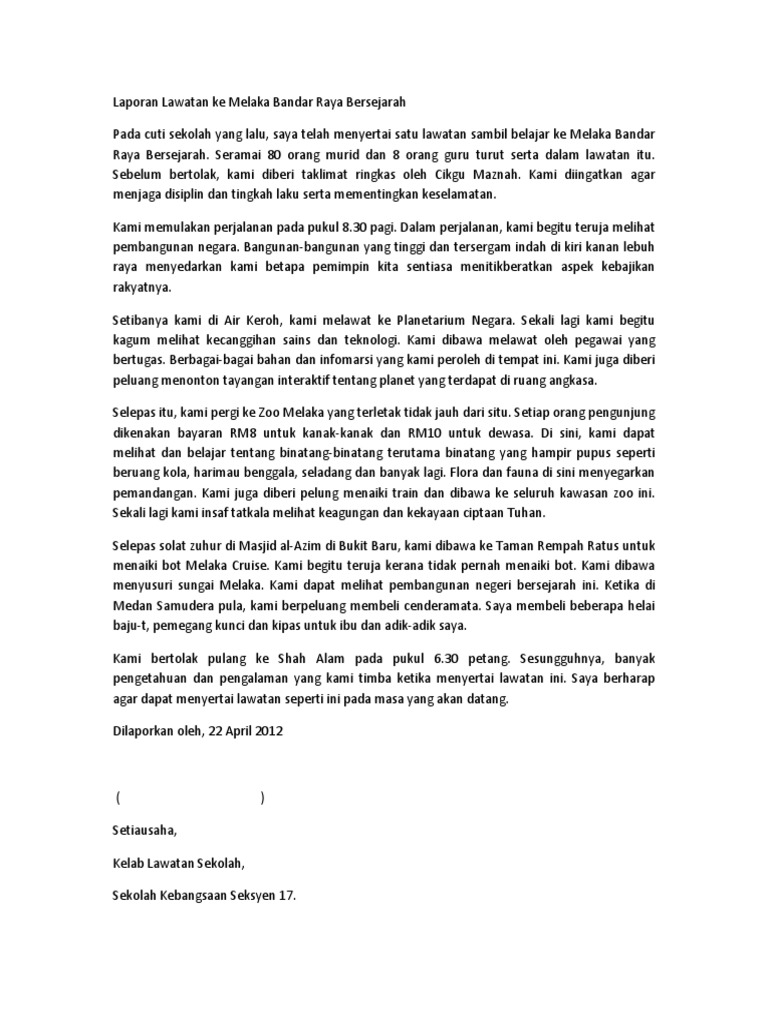 Karangan Laporan Lawatan Ke Melaka Bandar Raya Bersejarah Pdf